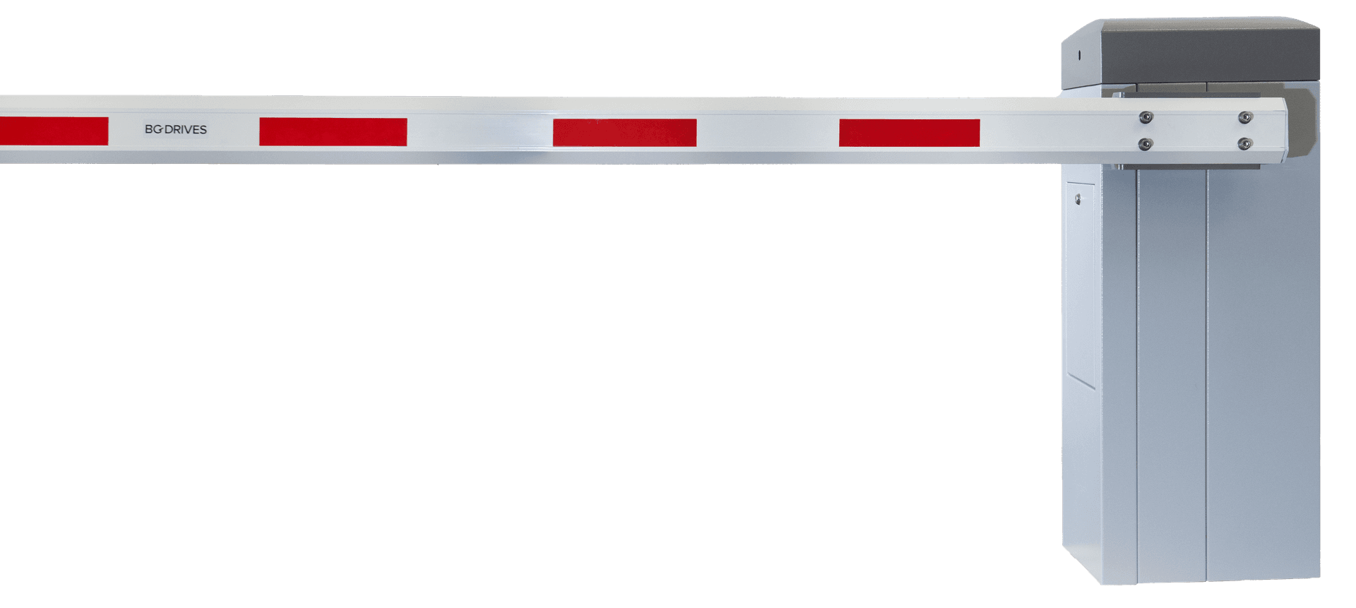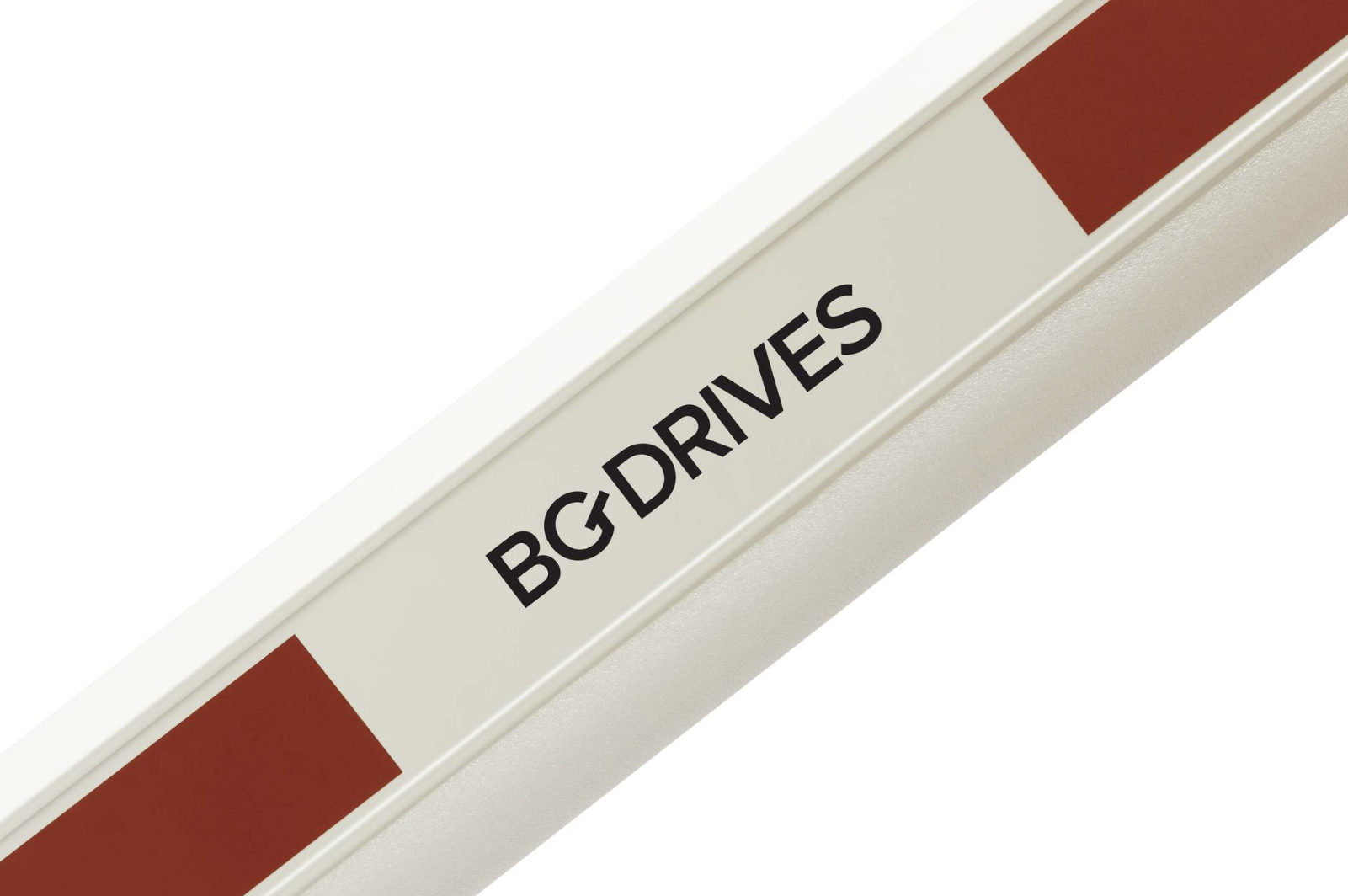 All BG Drives barrier arms have octagonal profiles (2.2 x 3.9 inch), are powder coated in white with red reflecting stickers, and fit to the corresponding BGD AXpark PRO barriers. All arms come with mounting material, impact protection, and side covers.